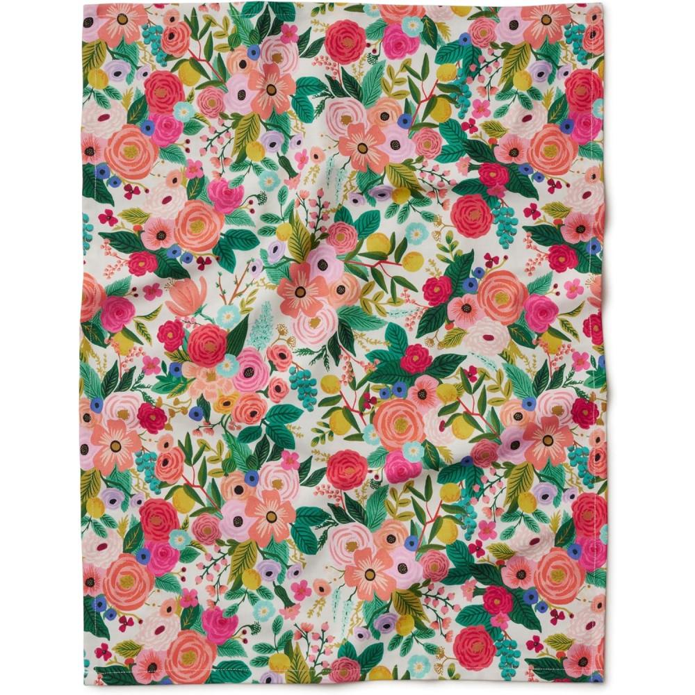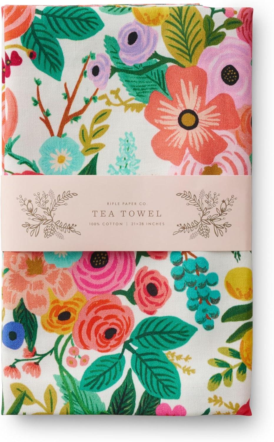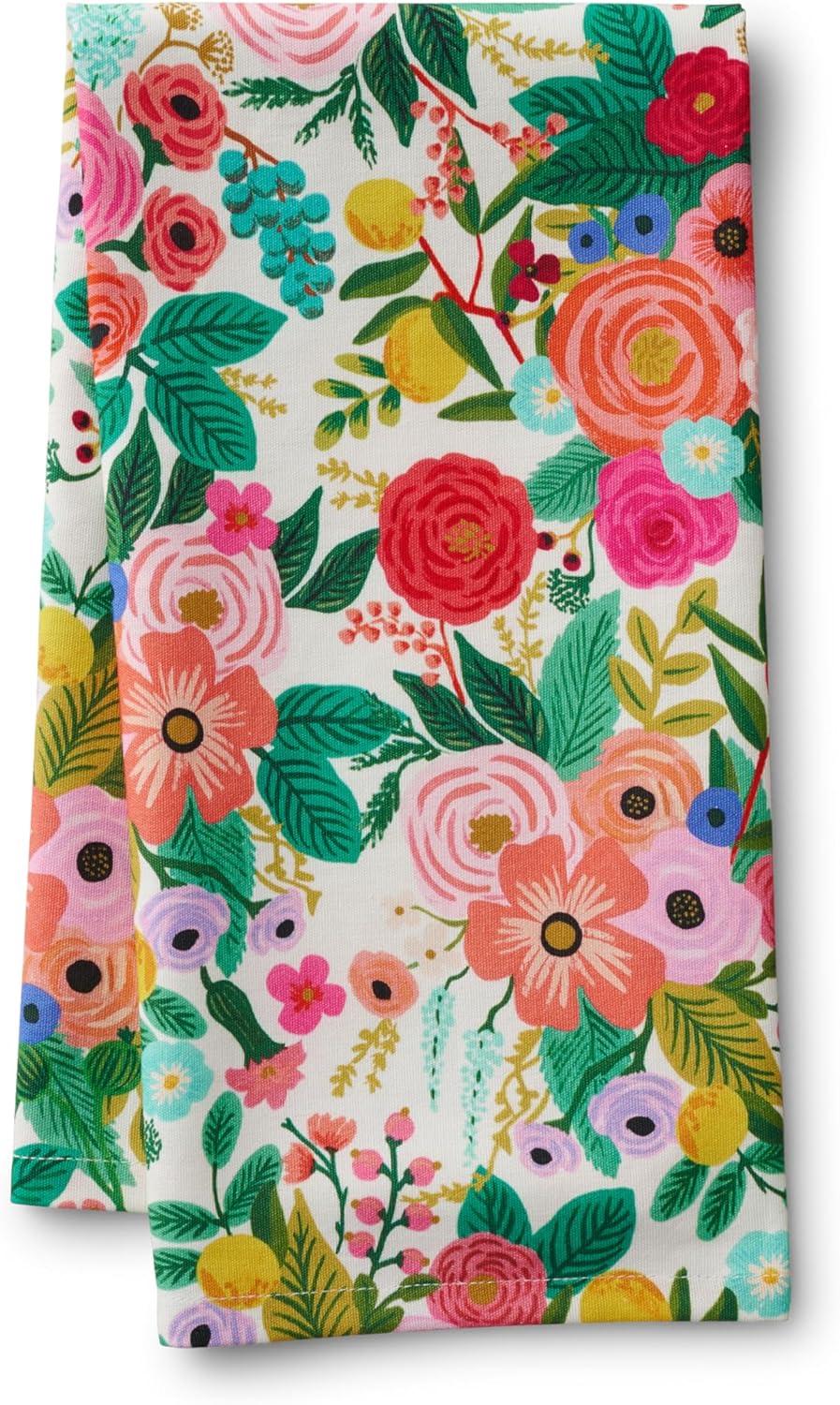 RIFLE PAPER CO. Cotton 21″ × 28″ Kitchen Tea Towel with Hanging Loop | Screen-Printed Dish Cloth for Drying Dishes, Cleaning, Serving, Home Essentials | Garden Party Pattern