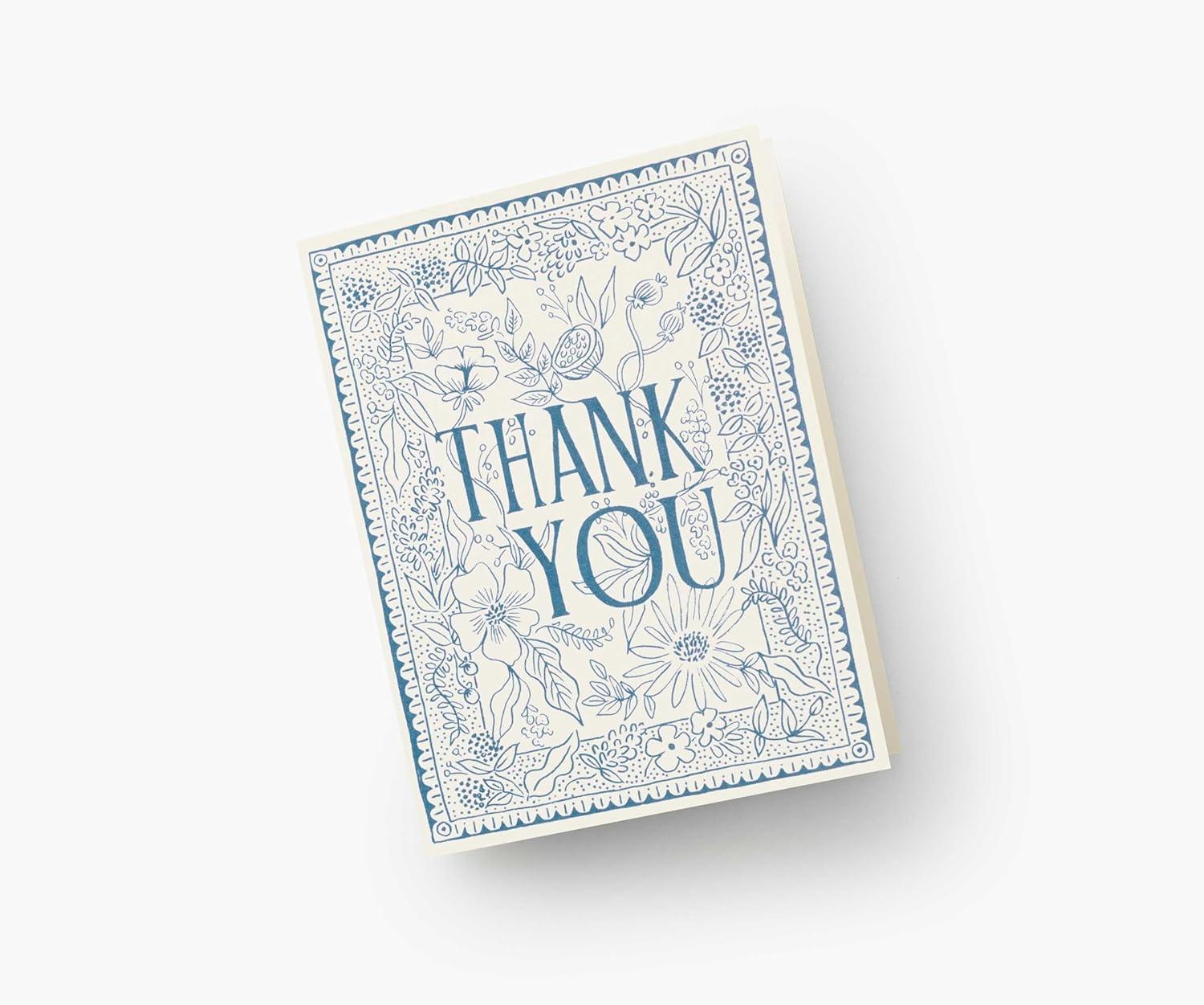 RIFLE PAPER CO. Delft Thank You Keepsake Card Boxed Set of 8, 4.25″ L x 5.5″ W Blank Interior Lets Your Thoughtful Handwritten Note Take Center Stage, Crafted in the USA
