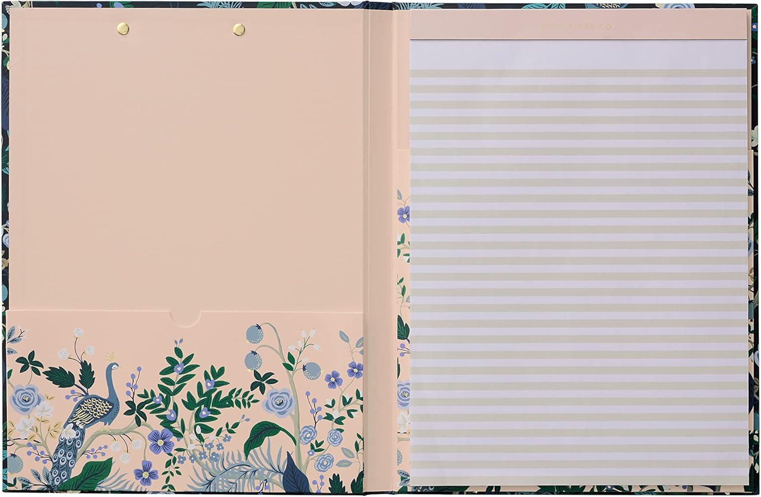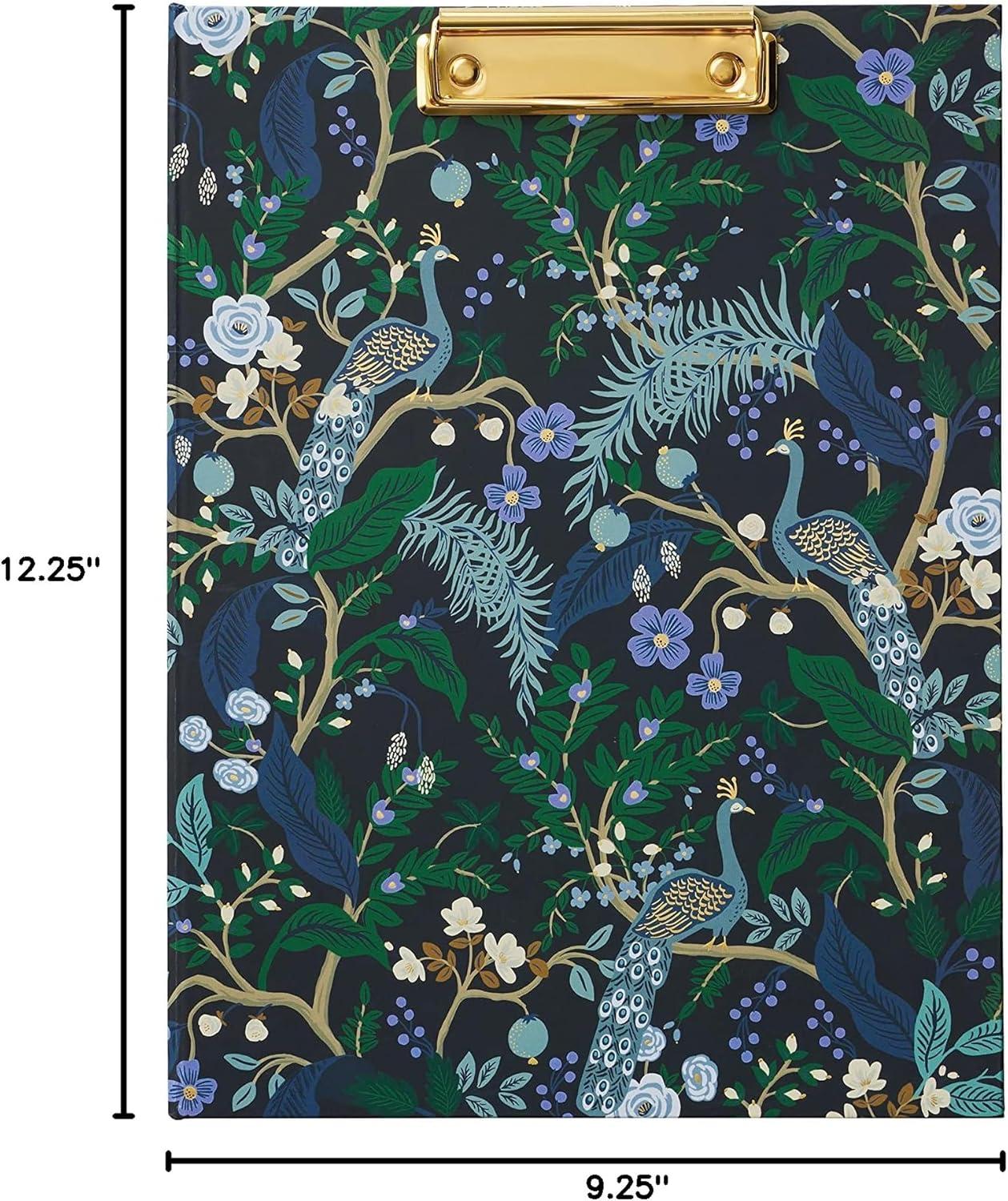 RIFLE PAPER CO. Garden Party Clipfolio, Illustrated Hardcover and Contrasting Interior, Features Strong Gold Clip on The Front, Comes with Writing Pad with 50 Lined, Perforated Sheets(Peacock)