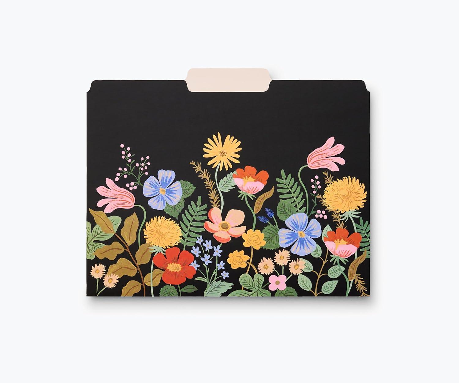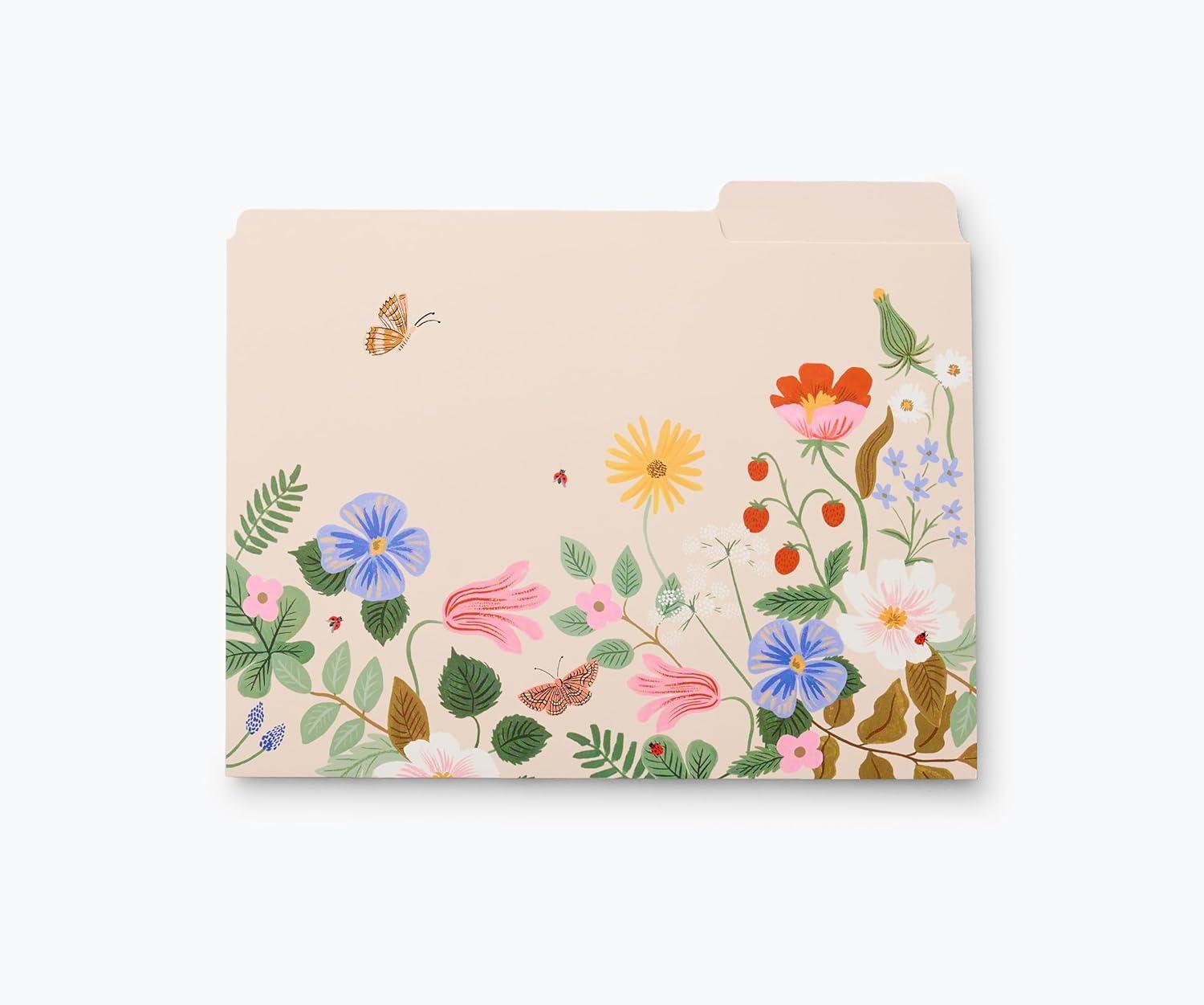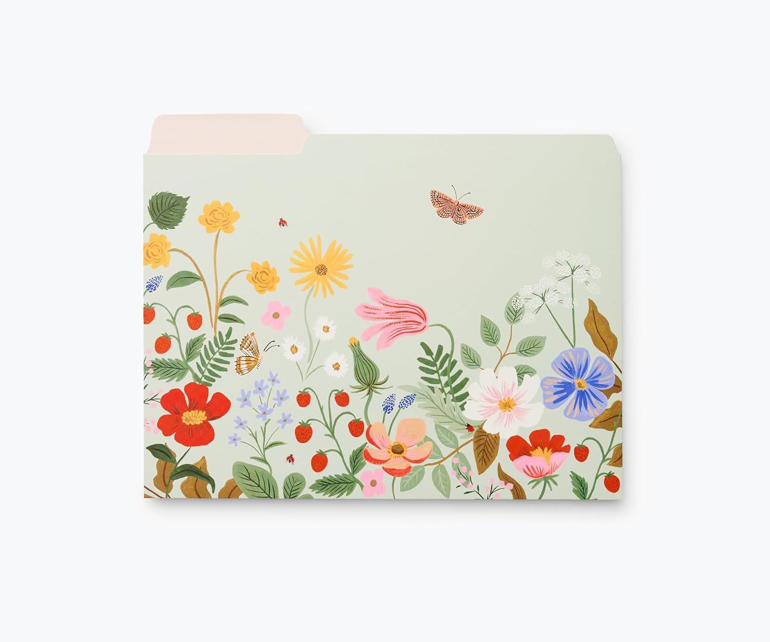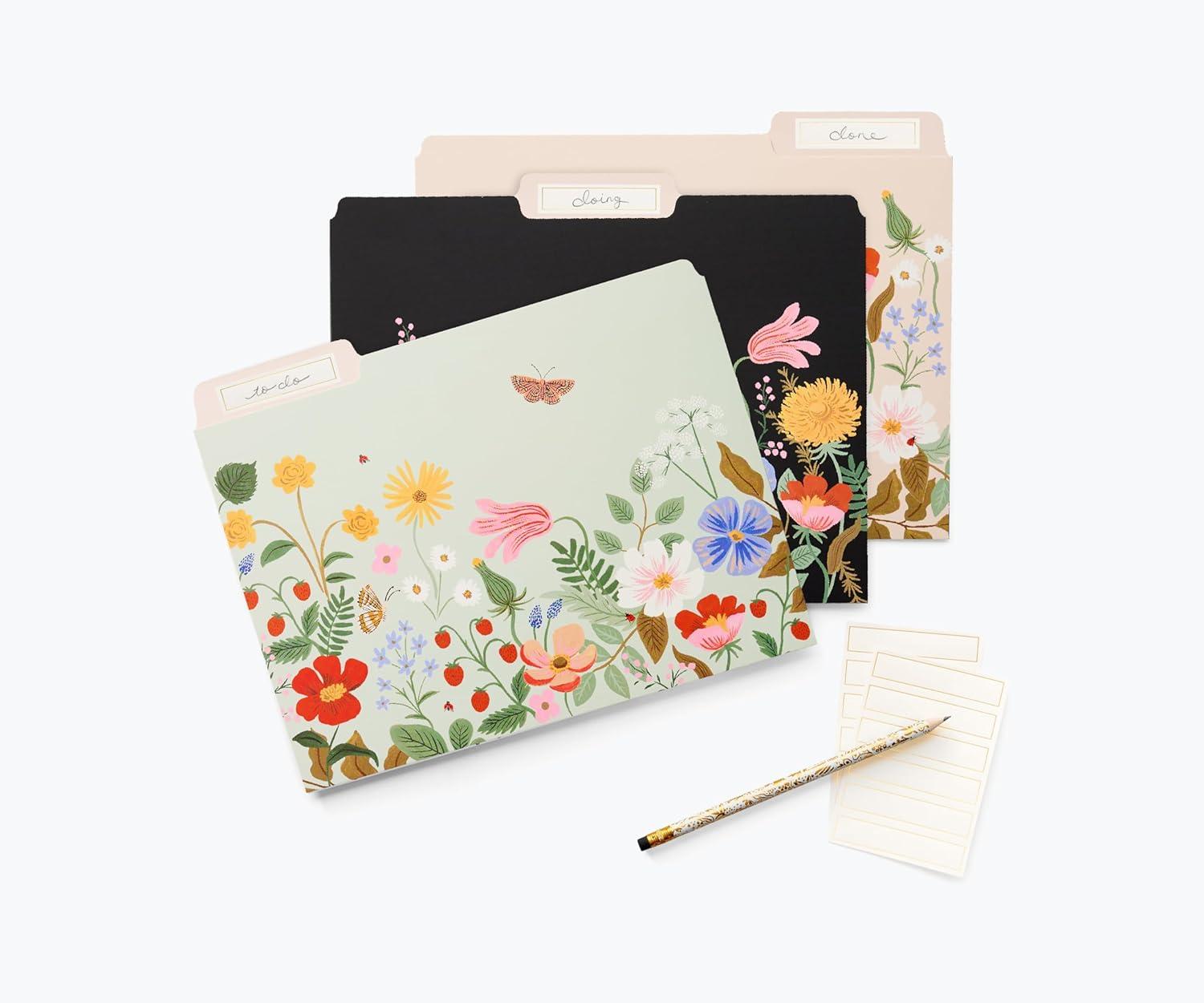 RIFLE PAPER CO. Hydrangea Assorted File Folder Set, Stay Organized with Our Stylish, Sturdy and Colorful File Folders, Set of 6 Including 2 of Each Design and 12 Handy Adhesive Labels(Strawberry Fields)