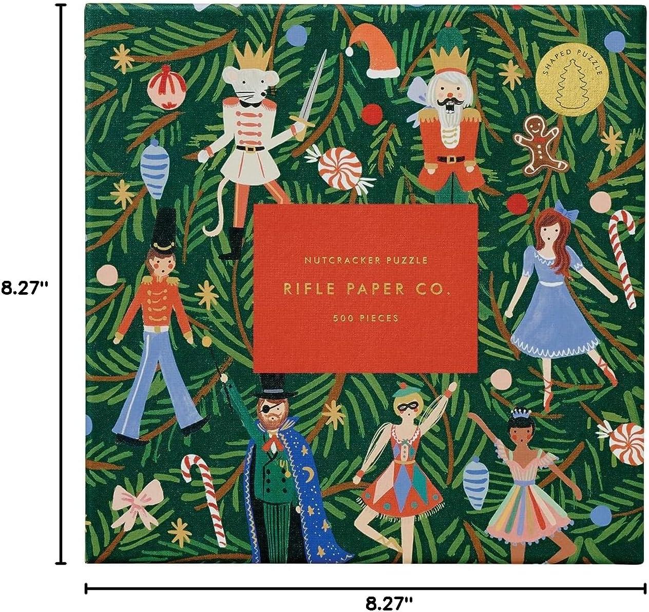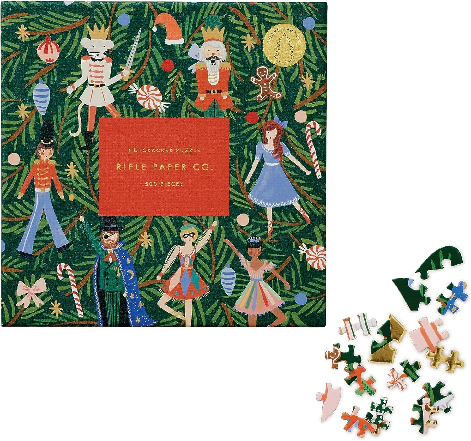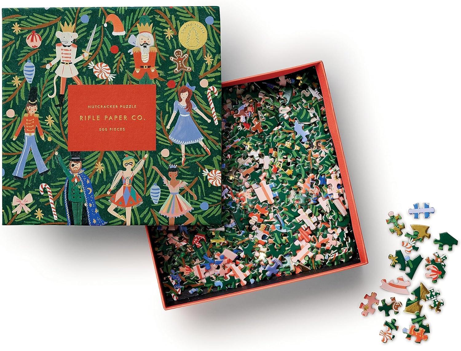 RIFLE PAPER CO. Nutcracker Illustrated Jigsaw Puzzle, 500 Pieces, Full Color, Finished Puzzle Size 21″ L x 15″ W, Paper Wrapped Gift Box with Gold Foil Accents, Enjoy Holiday Cheer(Nutcracker)