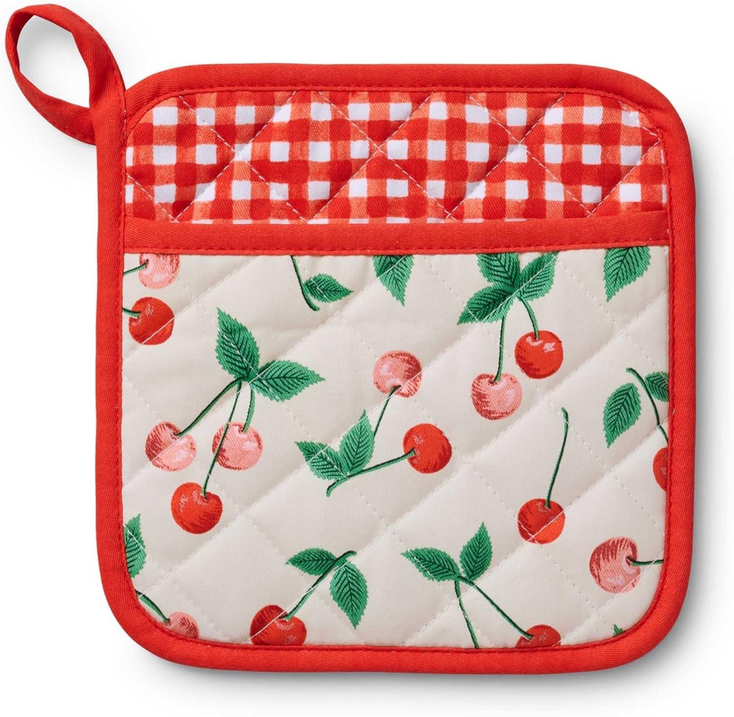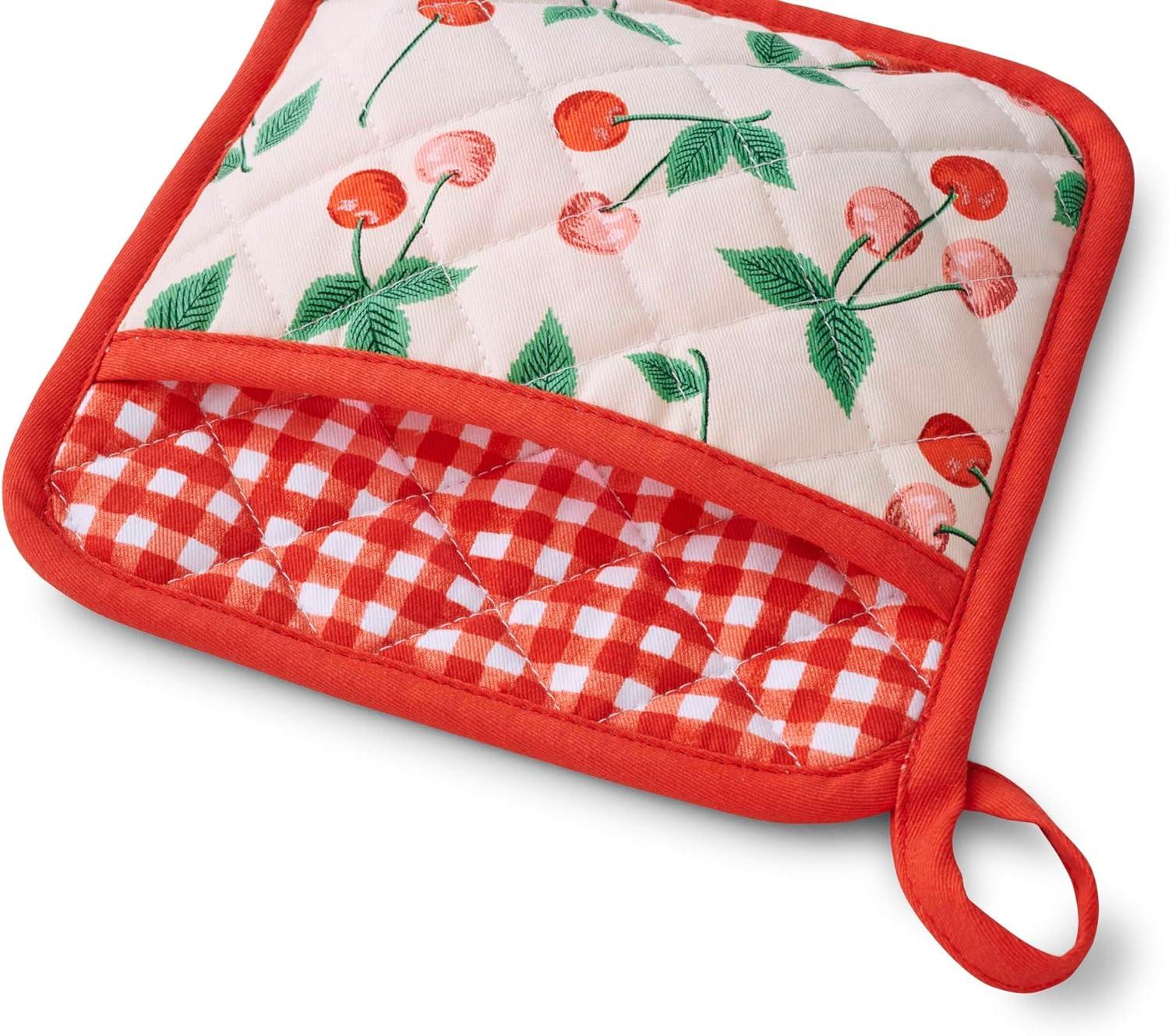 RIFLE PAPER CO. Set of 2 Pot Holders | Home Chef’s can Protects Your Hands with Oven Mitts | Heat Resistant – Add a Delightful Touch to Your Culinary Space | Cherrie Pattern