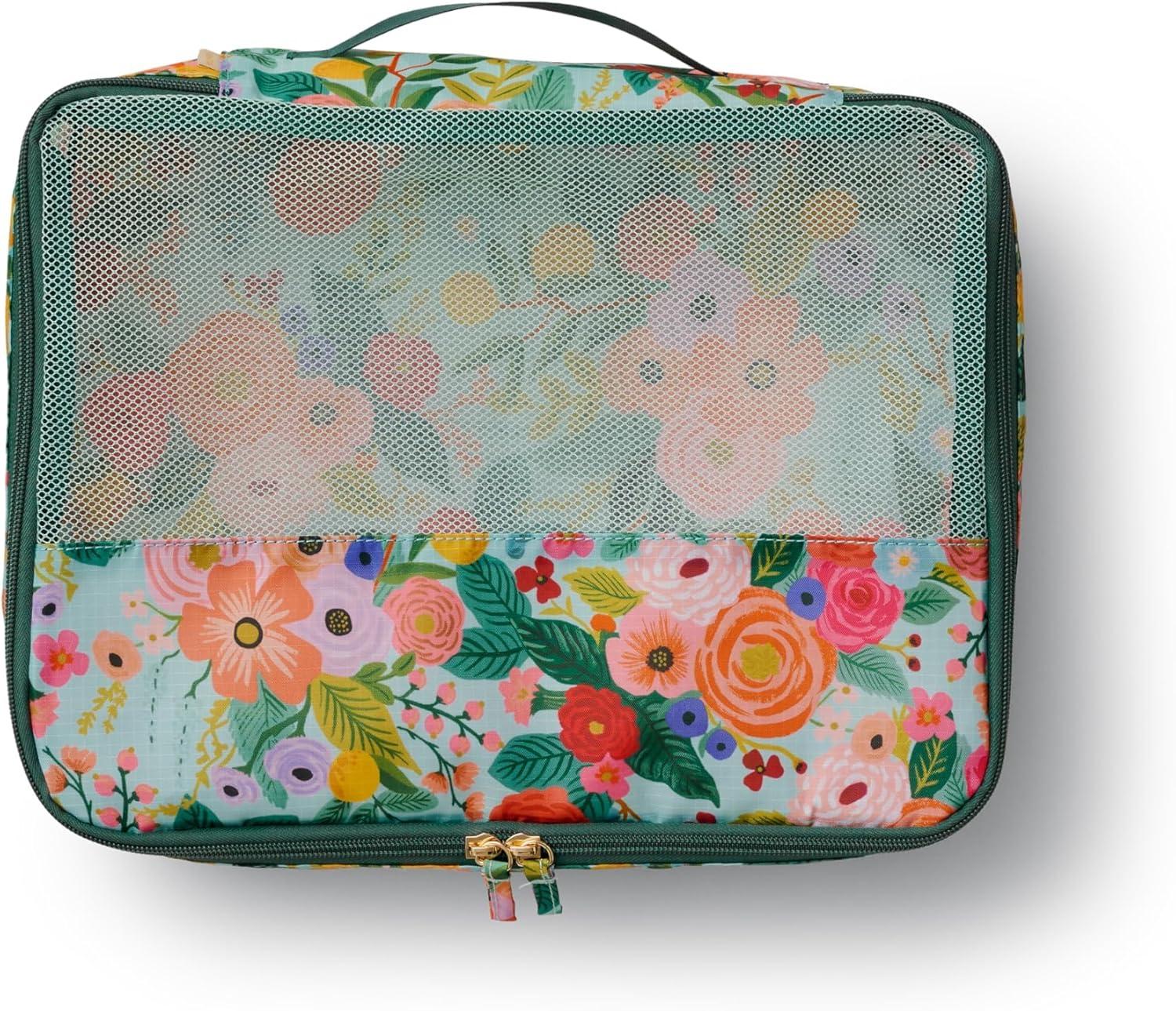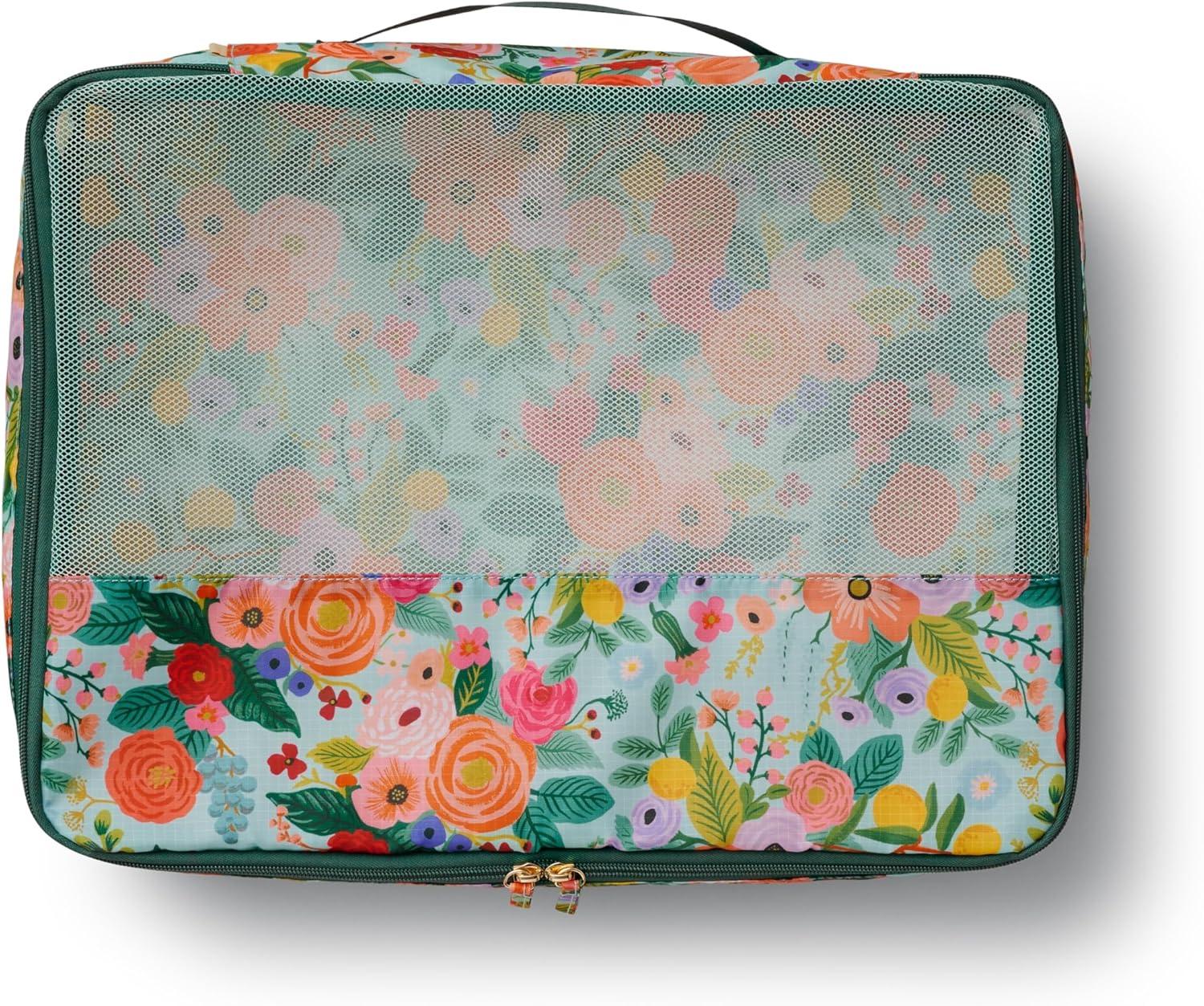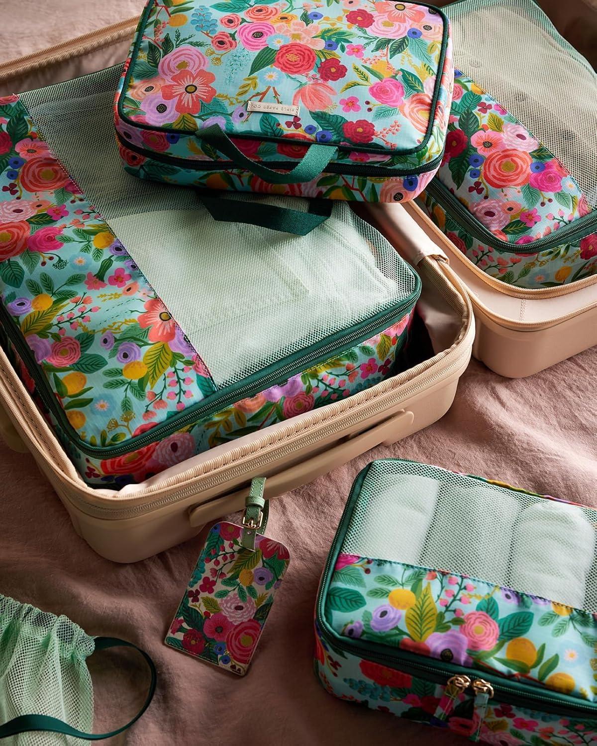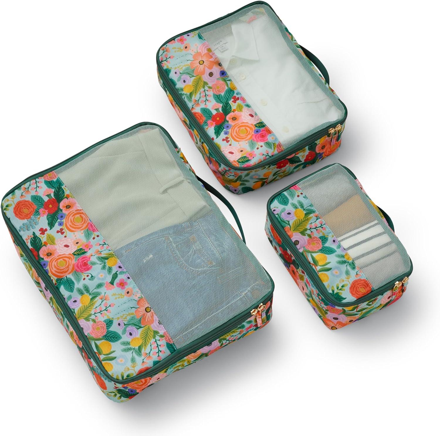 RIFLE PAPER CO. Soft Sided Packing Cubes Set of 3. Includes Small, Medium, Large and a Laundry Bag, Travel Must Have Accessory, Stylized Pattern, Safari(Garden Party)