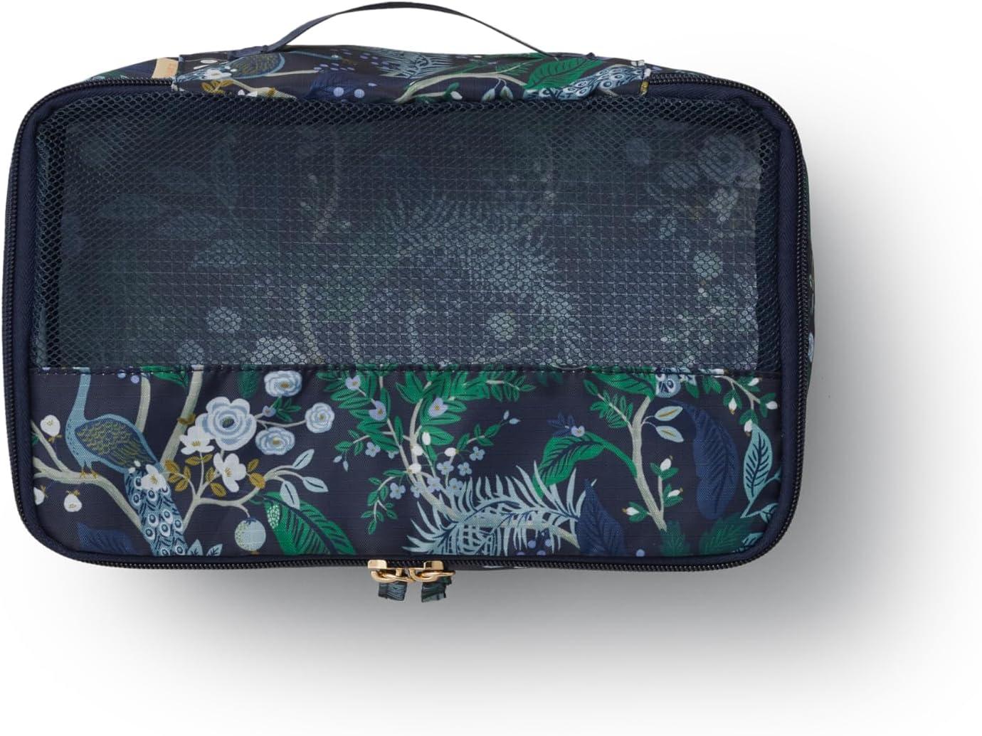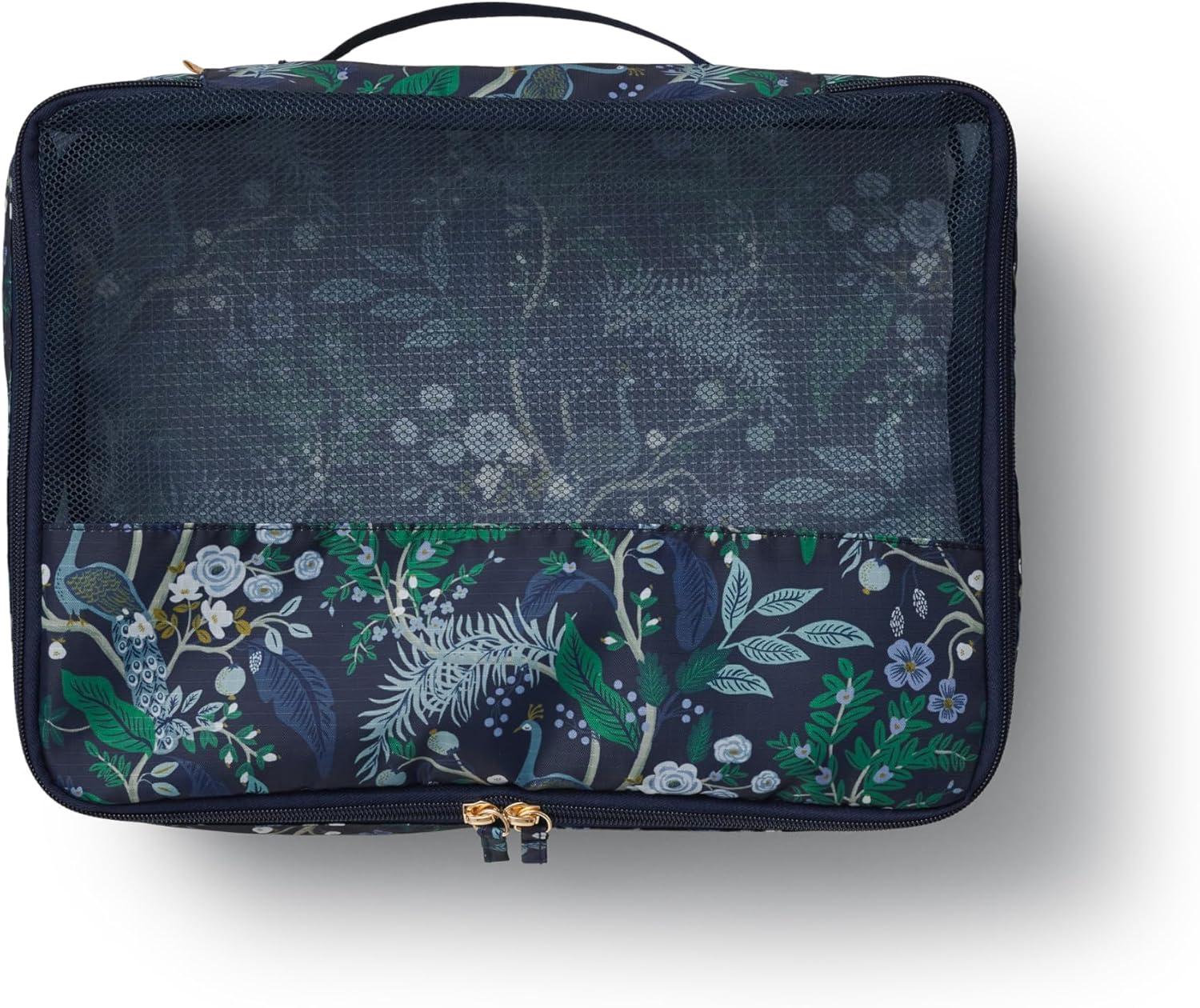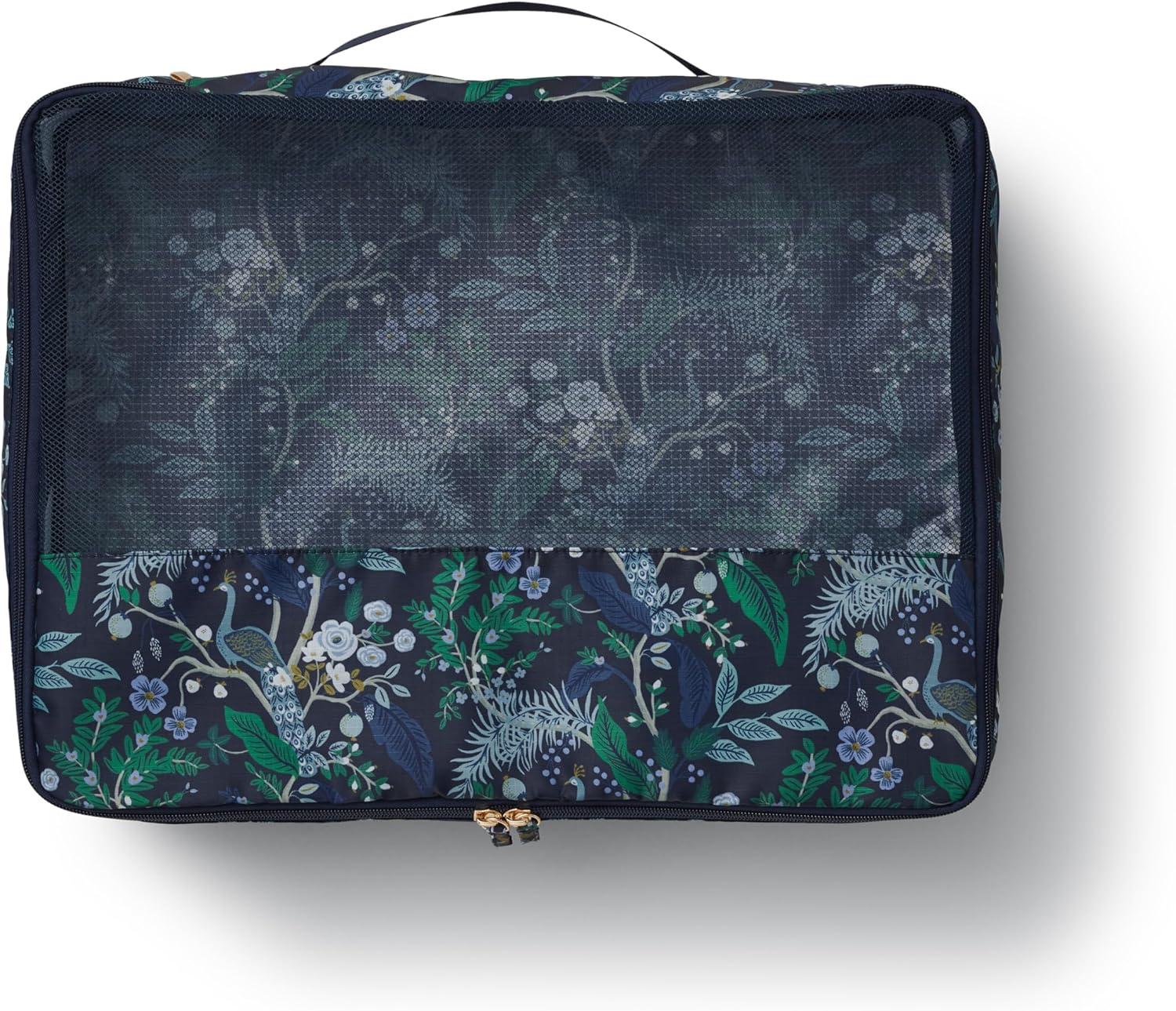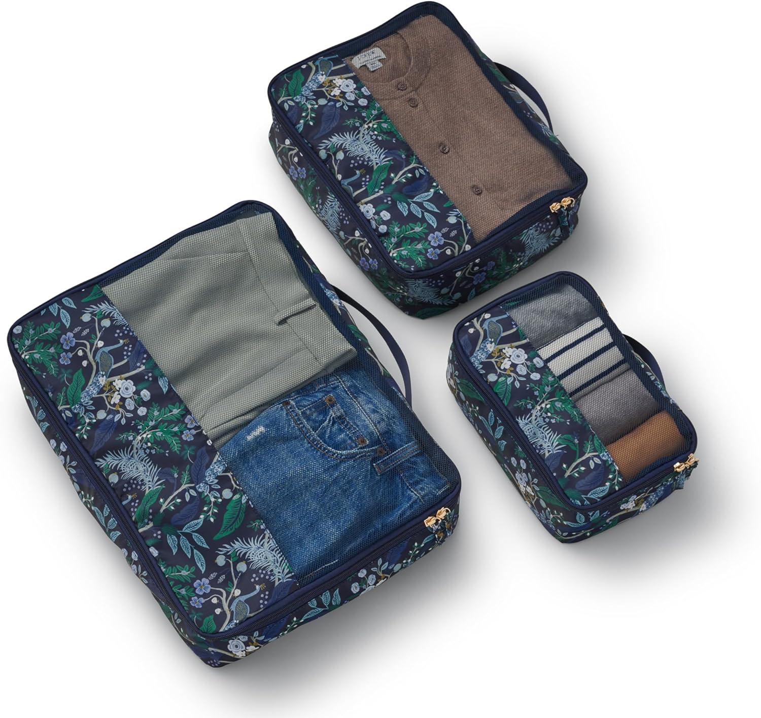 RIFLE PAPER CO. Soft Sided Packing Cubes Set of 3. Includes Small, Medium, Large and a Laundry Bag, Travel Must Have Accessory, Stylized Pattern, Safari(Peacock)