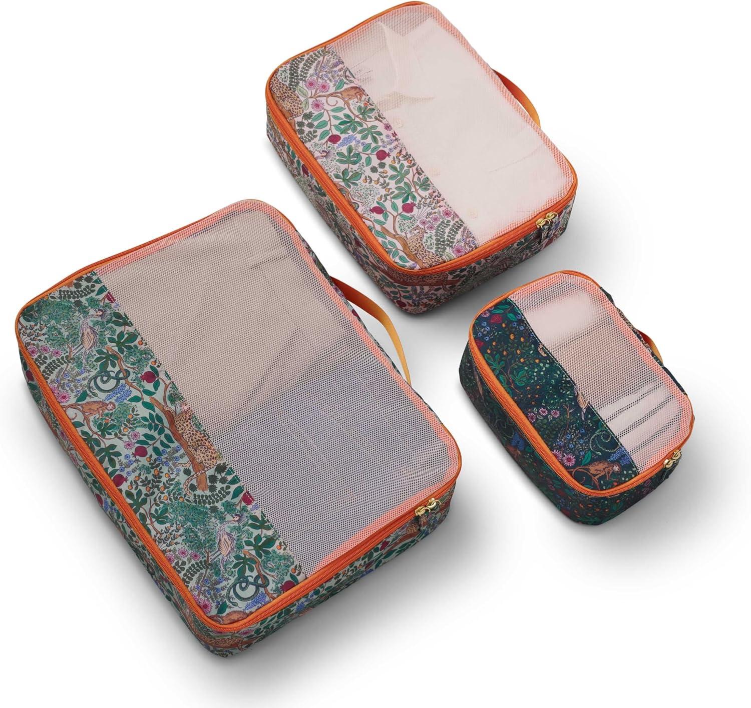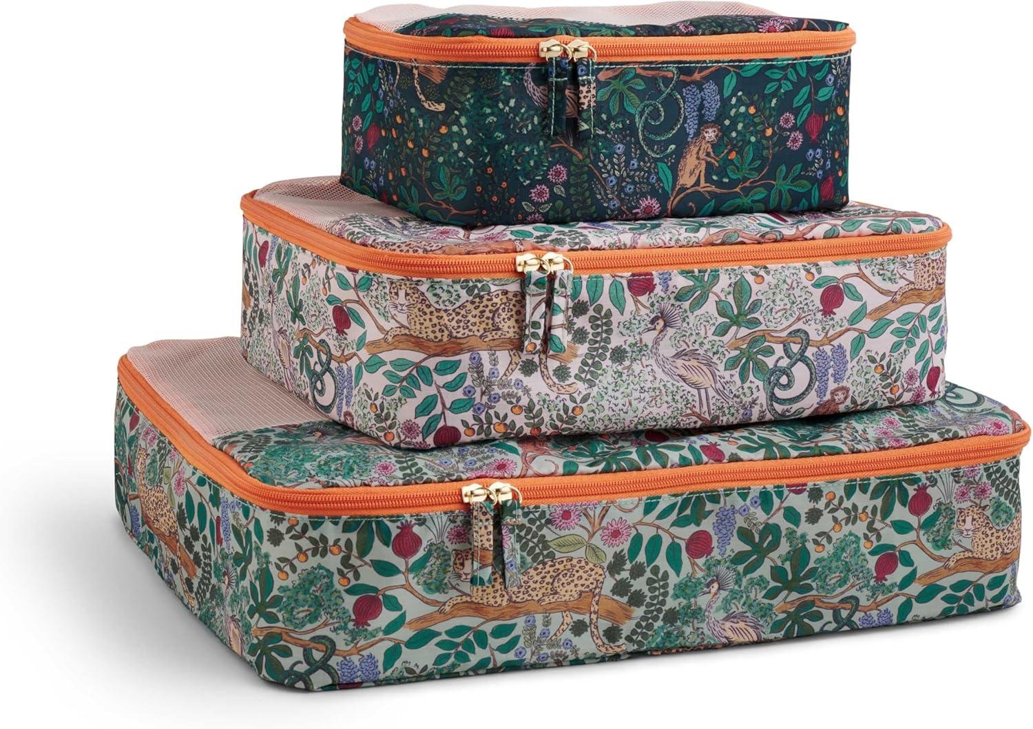 RIFLE PAPER CO. Soft Sided Packing Cubes Set of 3. Includes Small, Medium, Large and a Laundry Bag, Travel Must Have Accessory, Stylized Pattern, Safari(Safari)
