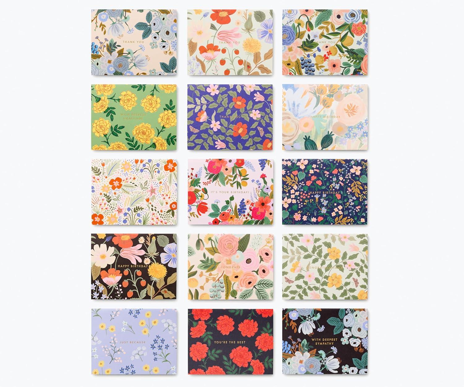 RIFLE PAPER CO. Timeless Congrats Greeting Card Boxed Set of 15, 6″ L × 2″ W Blank Interior Lets Your Thoughtful Handwritten Note Take Center Stage – Artisanally Crafted in the USA(Mixed Florals)