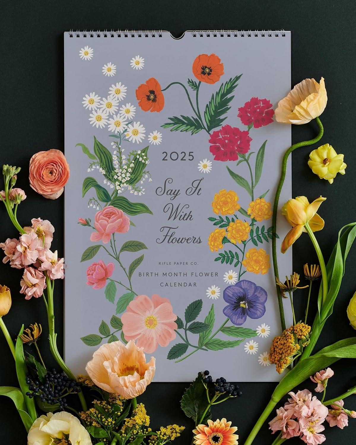 RIFLE PAPER CO. Wall Calendar, Dated for the Months of January – December 2025, Monthly Illustrations, Art Planner for Birthdays and Celebrations, Yearly Agenda (17″L x 11″W), Say It With Flowers